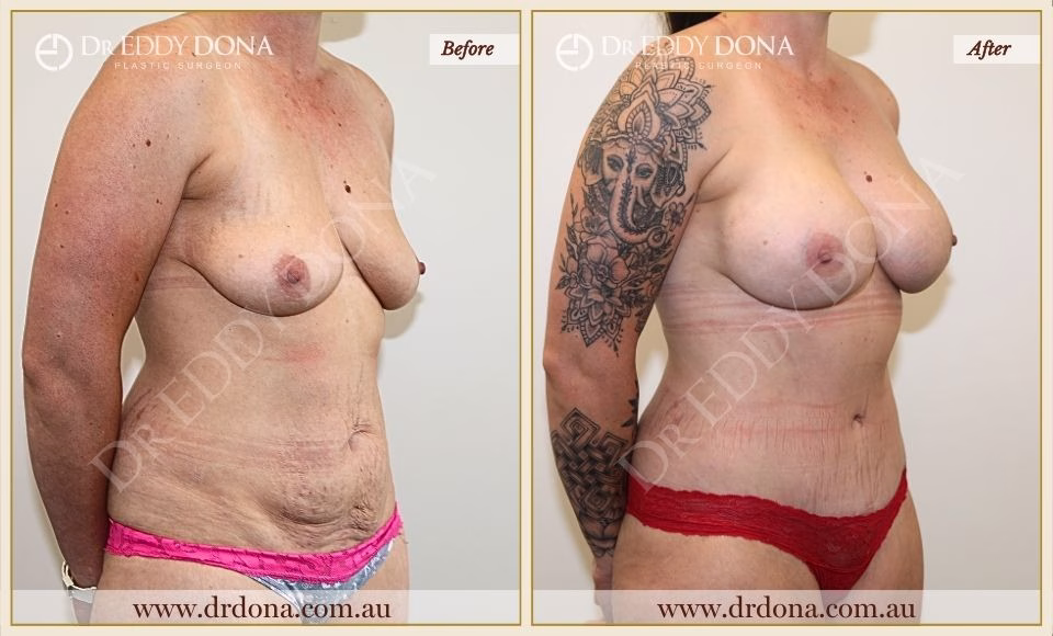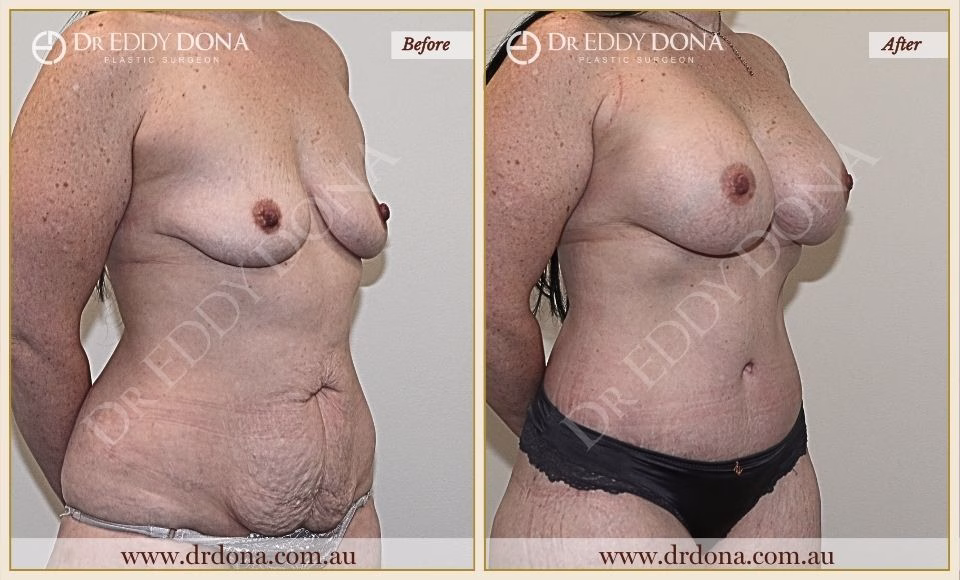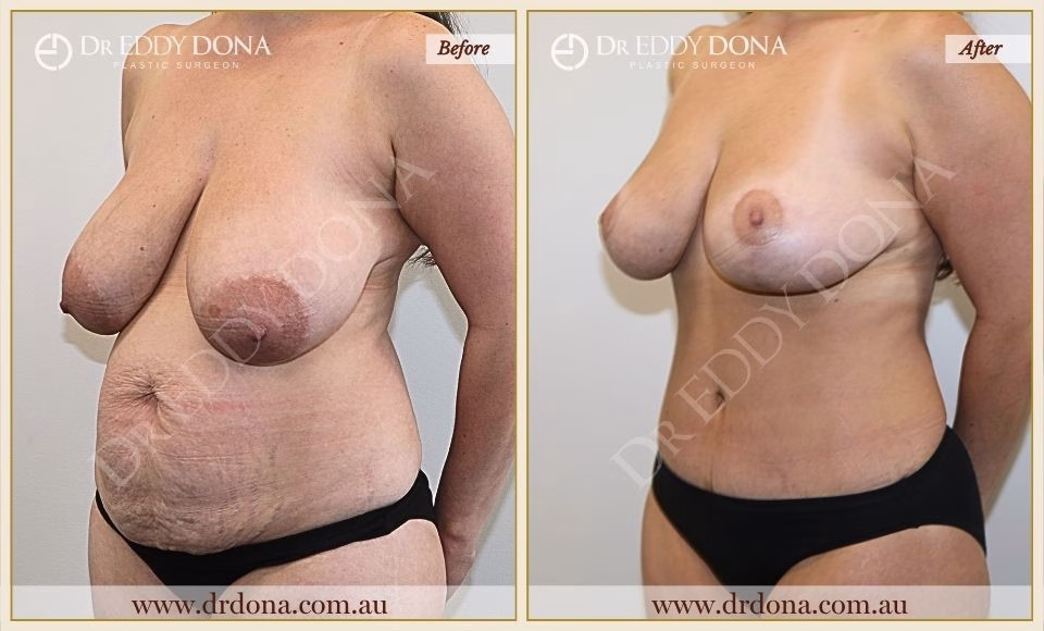 Lower Body Lift (Abdominoplasty) + Breast Reduction (Mammoplasty).