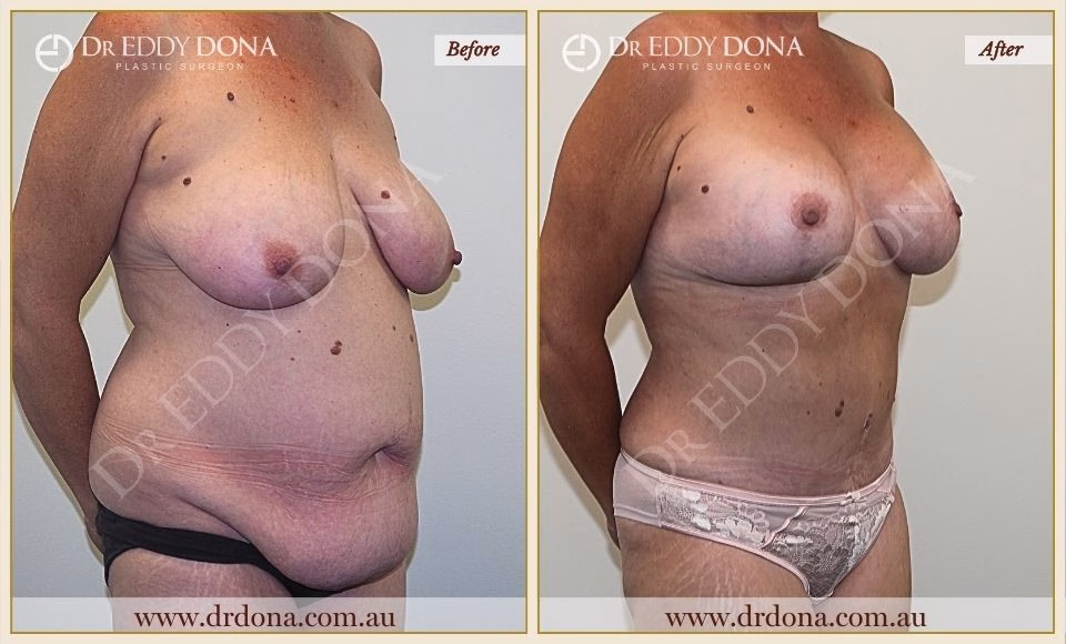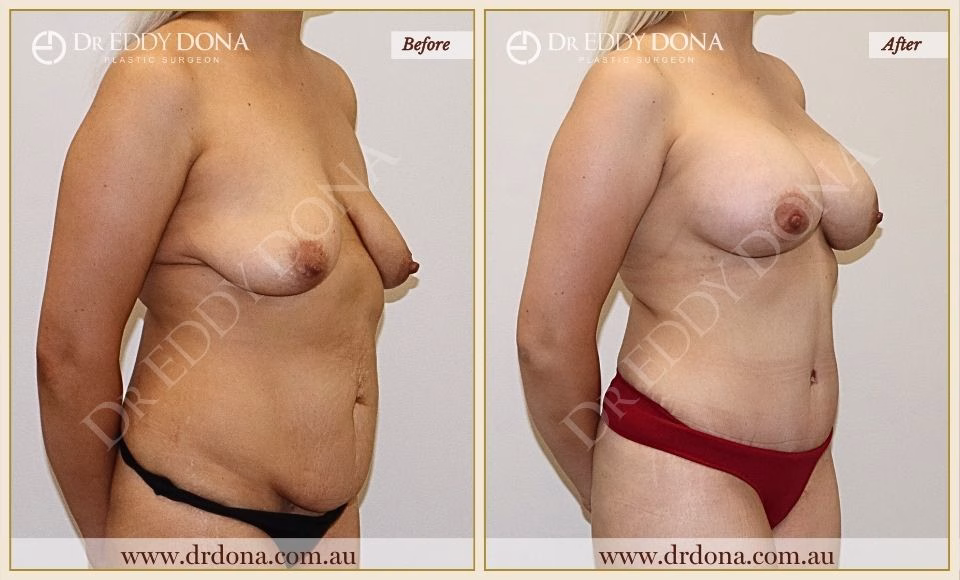 Lower Body Lift (Abdominoplasty) + Breast Implants & Breast Lift (Mastopexy) L + R 375cc , Anatomical, Dual Plane, Moderate Profile.